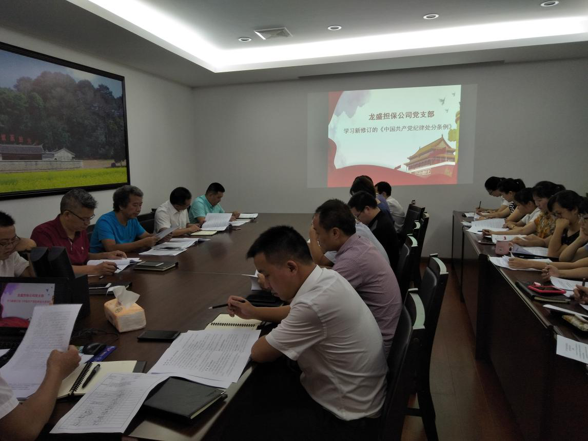 龍盛擔(dān)保公司黨支部迅速組織學(xué)習(xí)新修訂的《中國共產(chǎn)黨紀律處分條例》
